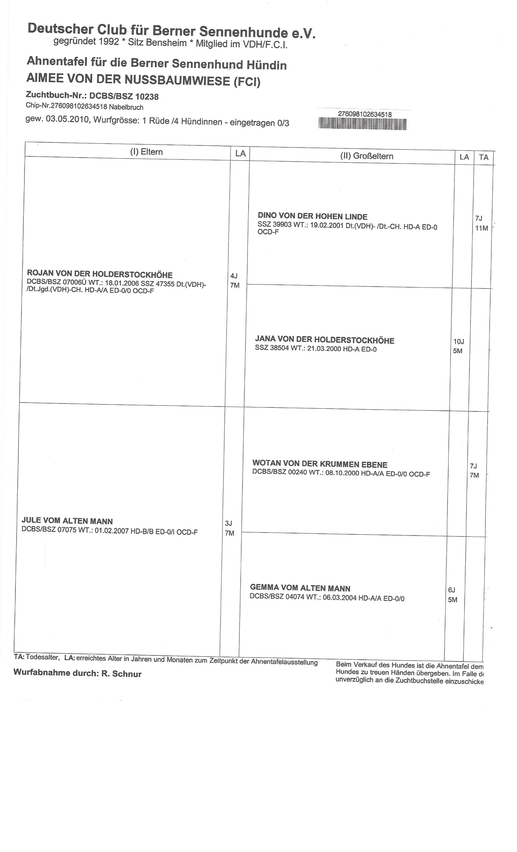 Anerkannter Züchter im Deutschen Club für Berner Sennenhunde (DCBS e.V. / VDH / F.C. I.)